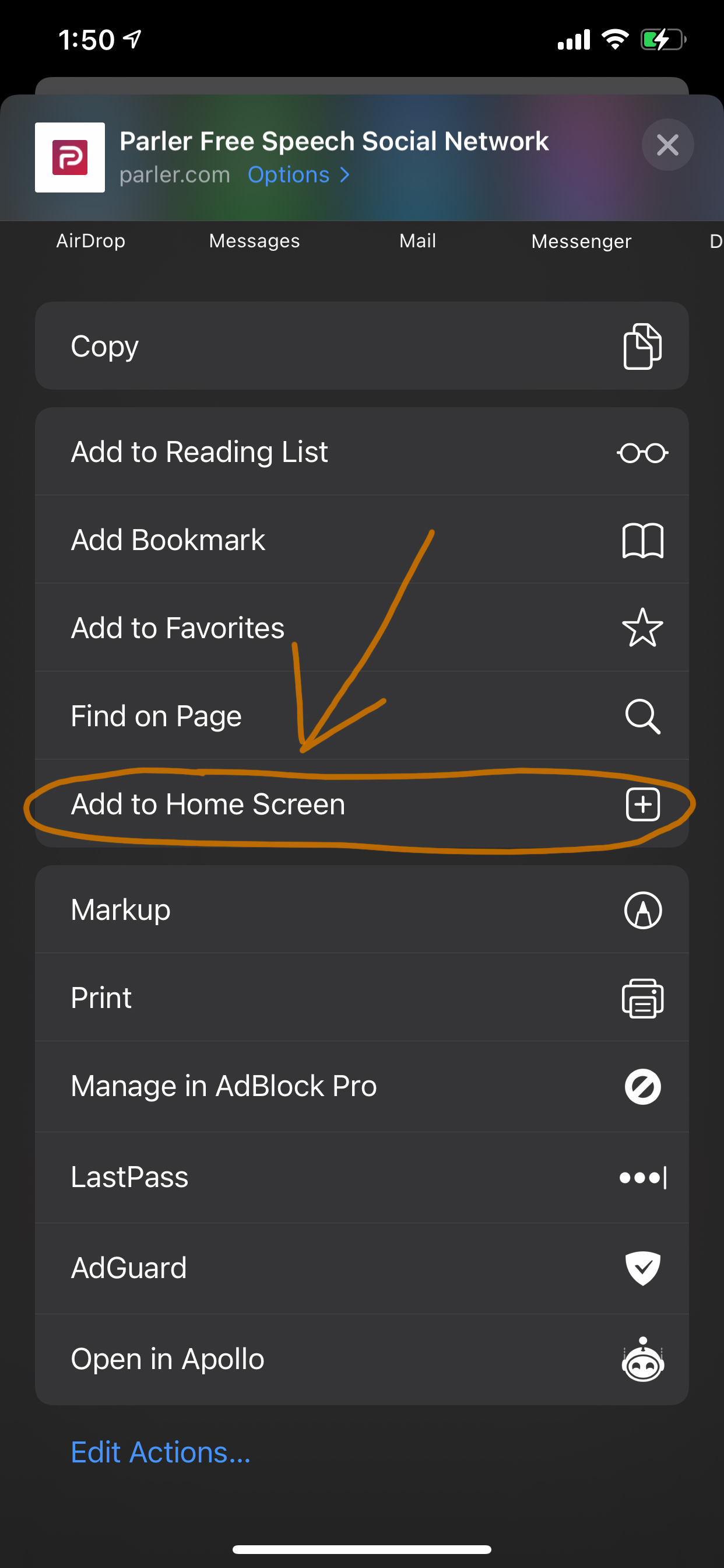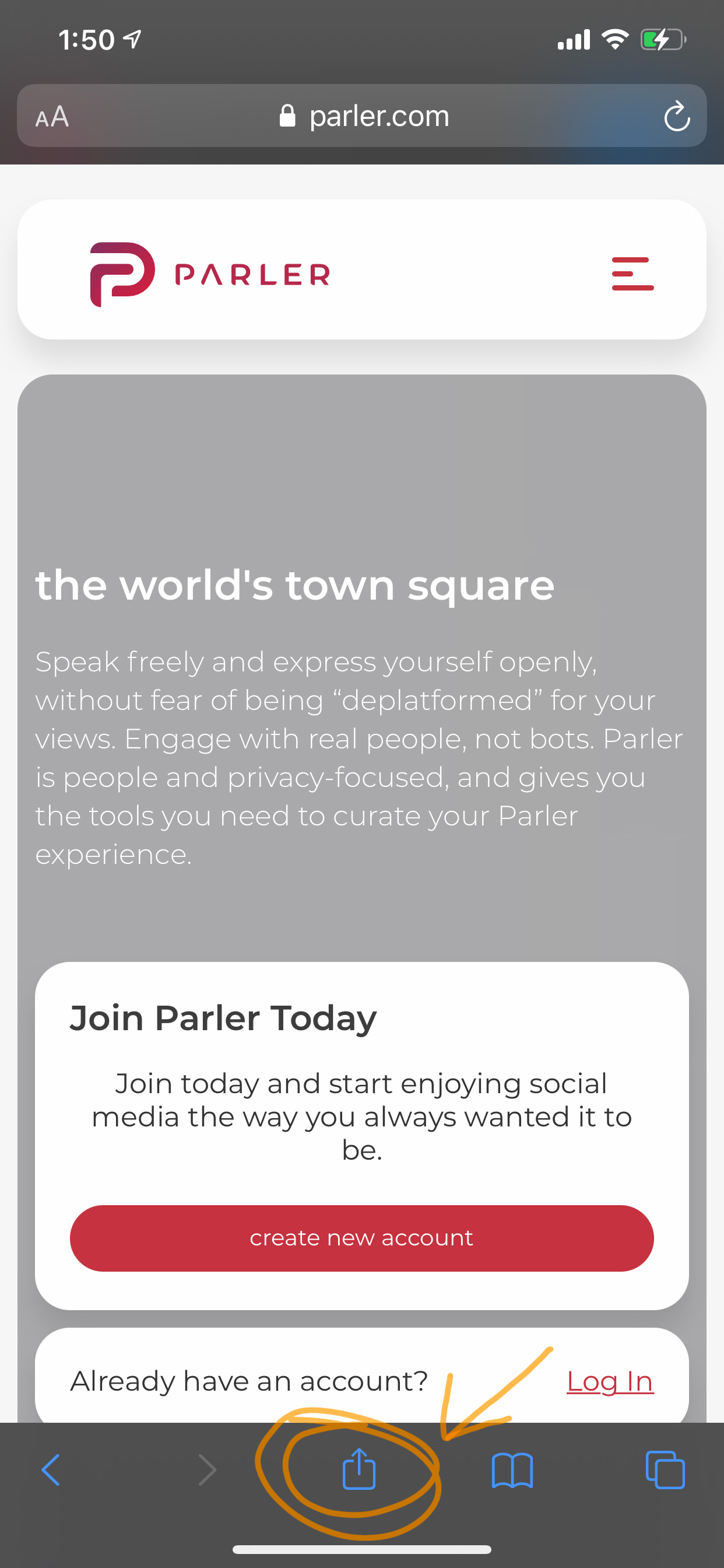 But there is great news! Even without the actual App, You can still access and use Parler, or any other app that has an equivalently functioning website by simply adding the website to your Home Screen.