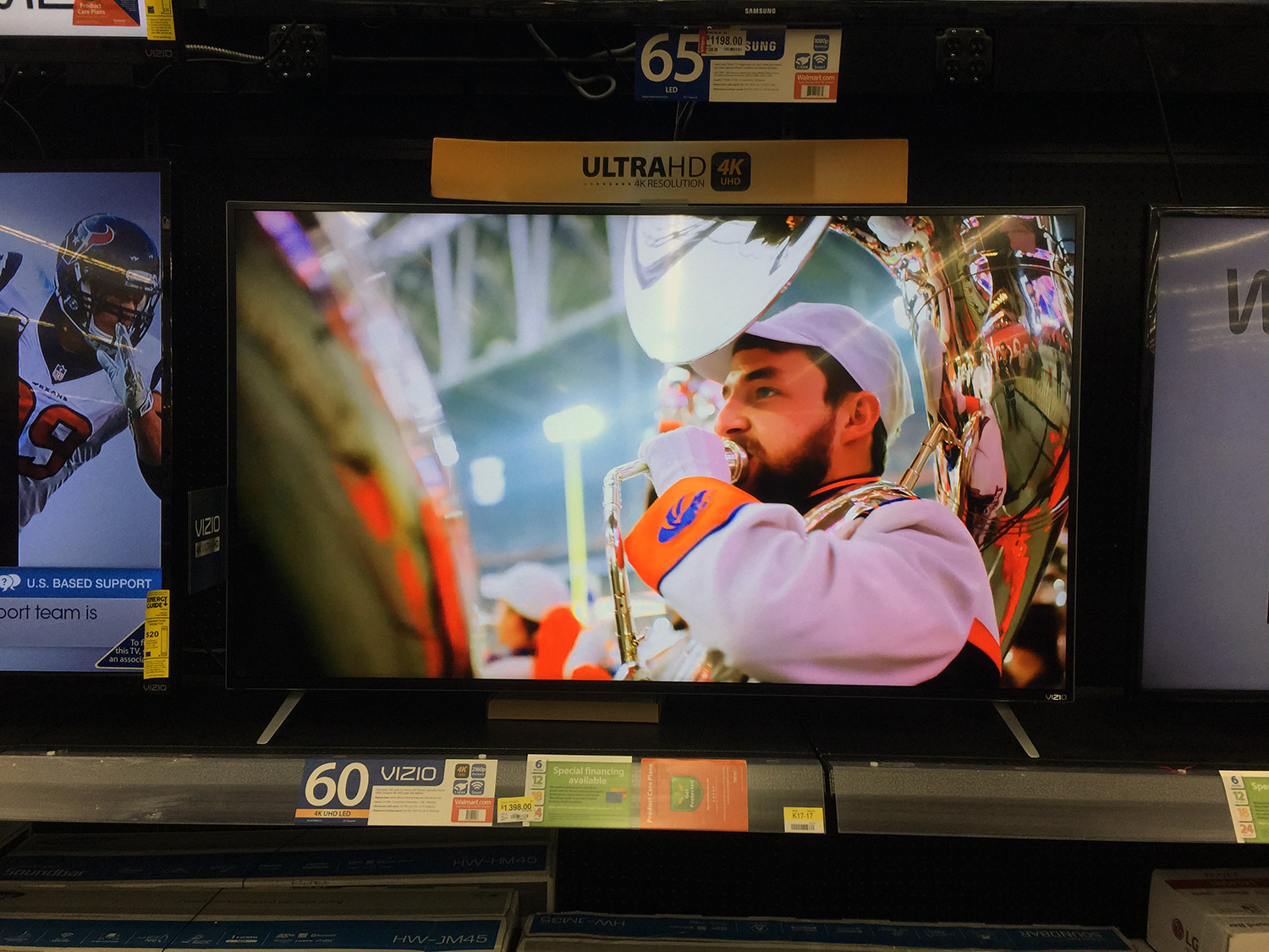 Walmart has been sending me financing offer info for the past year or so since I’ve head the Walmart CreditCard. The financing offer says on purchases upwards for $599 I’d have 24 months to pay it off without any interest being added. I never even thought about using this deal before, but I couldn’t get this Tv off my mind. So, I started doing the math. For this TV, plus tax which came to around $1,500, I’d only have to pay around $63 a month to have this TV paid off in full by the end of the two year mark. Now I hate being in debt, or racking up things on credit cards, but I do love these financing offers. They really help make life and working every day worth living. Can buy nice things, and not feel it really at all. Or at least this is what I tell myself when I’m inlove with a pricey TV. I know you can probably get the TV cheaper online, but I prefer buying expensive things like this at real stores, so I can easily return/exchange the TV if it has an issue, and over all save more in the long run with price and convenience.