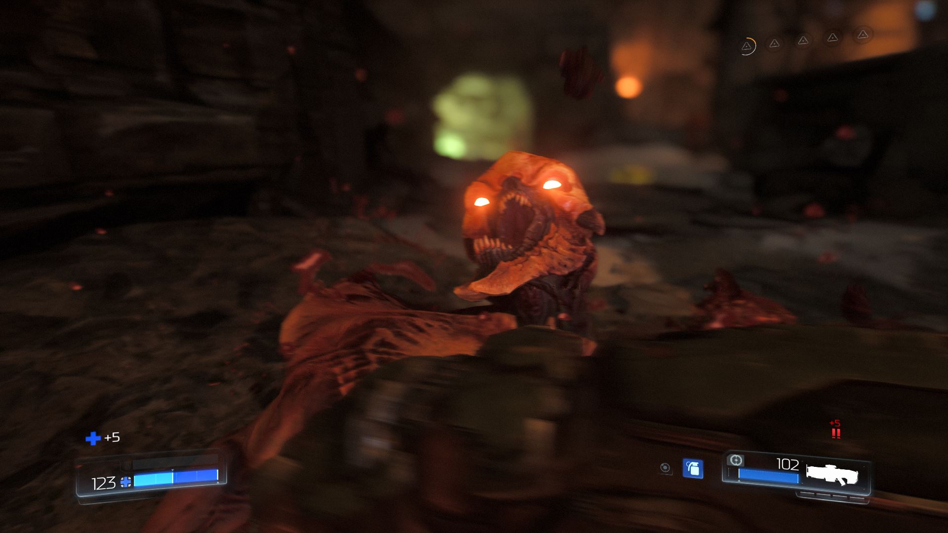 The game really looks and acts just as the original doom did, just better mechanics and graphics. The gameplay, atmosphere was the same, if not more immersive. The visuals combined with the audio, really puts you there. The music is amazing and really pumps you up when you’re shooting EVERYTHING IN SIGHT!