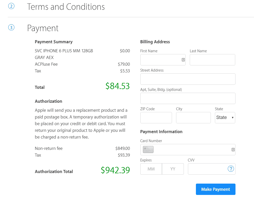 The Advance Replacement service sounds like the best for me. The only scary down side to that service is they’ll put a temp charge on my card for the entire price of the phone, and if they don’t get the phone returned to them within 10 days they’ll chage my a late fee of several hundred, and if they never get the phone they’ll charge me the total price of the phone which is $942.39 including tax. If I wanted to buy a whole other iPhone i’d just get the 6s Plus.